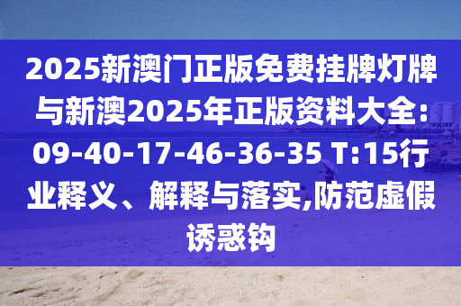 2025新澳門正版免費掛牌燈牌與新澳2025年正版資料大全:09-40-17-46-36-35 T:15行業(yè)釋義、解釋與落實,防范虛假誘惑鉤