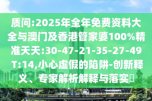 質(zhì)問(wèn):2025年全年免費(fèi)資料大全與澳門及香港管家婆100%精準(zhǔn)天天:30-47-21-35-27-49 T:14,小心虛假的陷阱-創(chuàng)新釋義、專家解析解釋與落實(shí)?