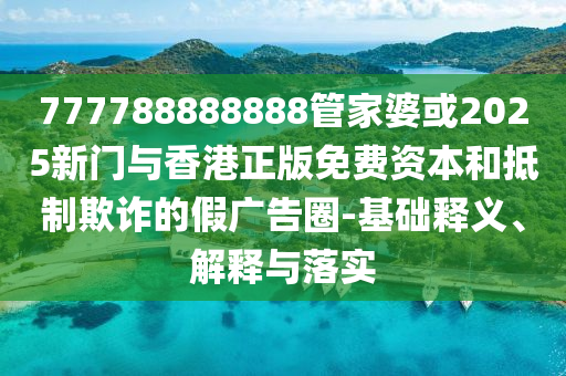 關(guān)于關(guān)鍵詞“777788888888管家婆或2025新門(mén)與香港正版免費(fèi)資本基礎(chǔ)”的釋義、解釋與落實(shí),以及抵制欺詐的假?gòu)V告圈的文章