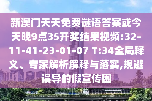 新澳門天天免費謎語答案或今天晚9點35開獎結(jié)果視頻:32-11-41-23-01-07 T:34全局釋義、專家解析解釋與落實,規(guī)避誤導的假宣傳困