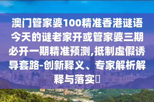澳門管家婆100精準(zhǔn)香港謎語今天的謎老家開或管家婆三期必開一期精準(zhǔn)預(yù)測(cè),抵制虛假誘導(dǎo)套路-創(chuàng)新釋義、專家解析解釋與落實(shí)?