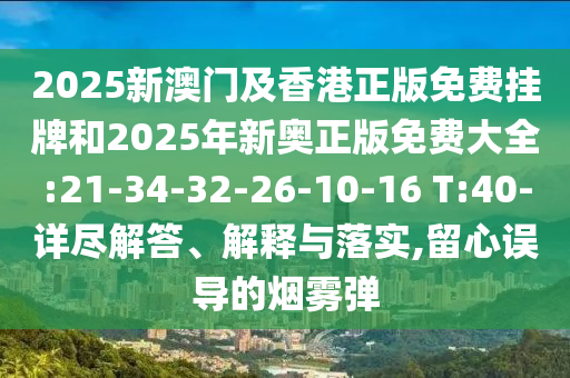 2025新澳門及香港正版免費掛牌和2025年新奧正版免費大全:21-34-32-26-10-16 T:40-詳盡解答、解釋與落實,留心誤導的煙霧彈