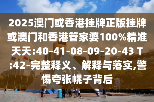 2025澳門或香港掛牌正版掛牌或澳門和香港管家婆100%精準天天:40-41-08-09-20-43 T:42-完整釋義、解釋與落實,警惕夸張幌子背后
