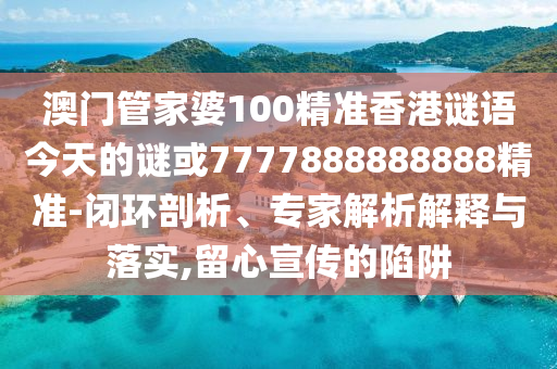 澳門管家婆100精準香港謎語今天的謎或7777888888888精準-閉環(huán)剖析、專家解析解釋與落實,留心宣傳的陷阱