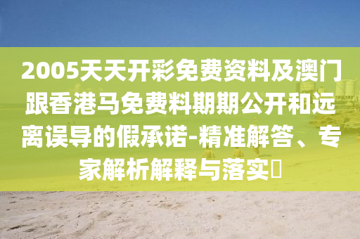 2005天天開彩免費資料及澳門跟香港馬免費料期期公開的遠離誤導的假承諾”的精準解答、專家解析解釋與落實