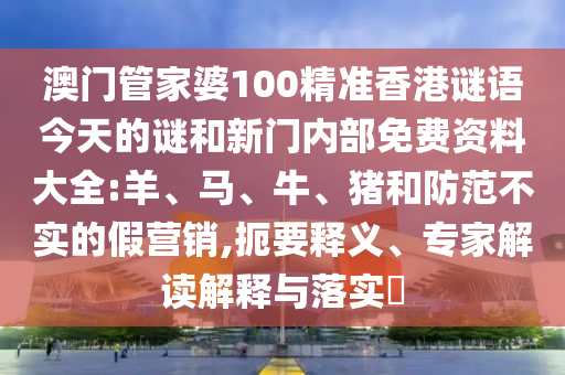 關(guān)于澳門管家婆100精準(zhǔn)香港謎語(yǔ)今天的謎和新門內(nèi)部免費(fèi)資料大全,以及羊、馬、牛、豬的防范不實(shí)的假營(yíng)銷,我們需要從多個(gè)角度進(jìn)行釋義、解釋與落實(shí),并提醒公眾警惕虛假宣傳。