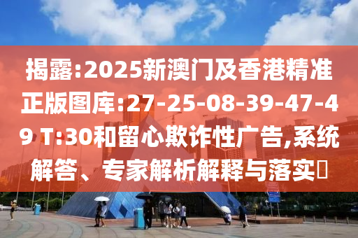 關(guān)于揭露“2025新澳門及香港精準正版圖庫:27-25-08-39-47-49 T:30系統(tǒng)解答、專家解析解釋與落實”及留心欺詐性廣告的警示文章