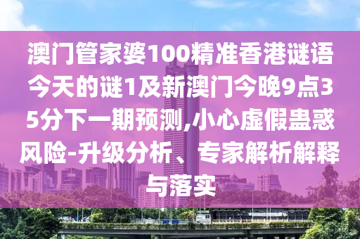 澳門管家婆100精準香港謎語今天的謎1及新澳門今晚9點35分下一期預測,小心虛假蠱惑風險-升級分析、專家解析解釋與落實