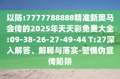 以防:7777788888精準(zhǔn)新奧馬會(huì)傳的2025年天天彩免費(fèi)大全:09-38-26-27-49-44 T:27深入解答、解釋與落實(shí)-警惕偽宣傳陷阱