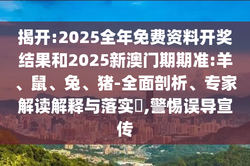 關(guān)于揭開“2025全年免費(fèi)資料開獎(jiǎng)結(jié)果”和“新澳門期期準(zhǔn)羊、鼠、兔、豬”的真相:全面釋義、專家解讀與落實(shí)、警惕虛假宣傳