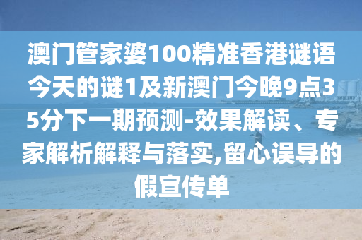 澳門管家婆100精準(zhǔn)香港謎語(yǔ)今天的謎1及新澳門今晚9點(diǎn)35分下一期預(yù)測(cè)-效果解讀、專家解析解釋與落實(shí),留心誤導(dǎo)的假宣傳單