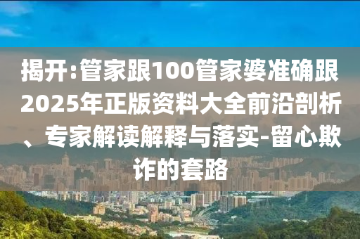 揭開:管家跟100管家婆準(zhǔn)確跟2025年正版資料大全前沿剖析、專家解讀解釋與落實(shí)-留心欺詐的套路