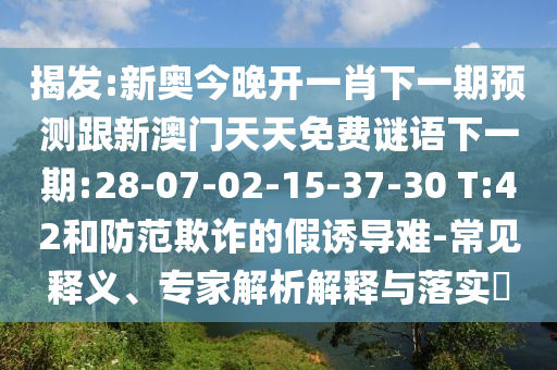 揭發(fā):新奧今晚開一肖下一期預(yù)測跟新澳門天天免費謎語下一期:28-07-02-15-37-30 T:42和防范欺詐的假誘導(dǎo)難-常見釋義、專家解析解釋與落實?