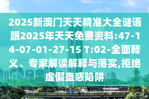 2025新澳門天天精準(zhǔn)大全謎語跟2025年天天免費資料:47-14-07-01-27-15 T:02-全面釋義、專家解讀解釋與落實,拒絕虛假蠱惑陷阱