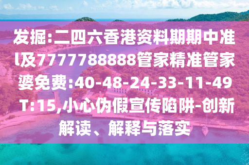 二四六香港資料期期中準(zhǔn)l及7777788888管家精準(zhǔn)管家婆免費(fèi):40-48-24-33-11-49 T:15”的創(chuàng)新解讀、解釋與落實,以及警惕虛假宣傳陷阱