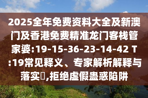 2025全年免費(fèi)資料大全及新澳門及香港免費(fèi)精準(zhǔn)龍門客棧管家婆:19-15-36-23-14-42 T:19常見釋義、專家解析解釋與落實?,拒絕虛假蠱惑陷阱