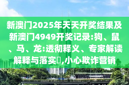 關(guān)于揭開新澳門2025年天天開獎(jiǎng)結(jié)果及新澳門4949開獎(jiǎng)記錄中關(guān)于狗、鼠、馬、龍的透徹釋義、專家解讀解釋與落實(shí),以及提醒公眾警惕虛假宣傳和欺詐營銷的文章