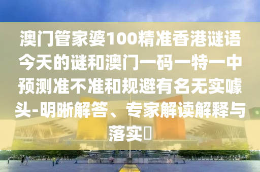 澳門管家婆100精準(zhǔn)香港謎語今天的謎和澳門一碼一特一中預(yù)測準(zhǔn)不準(zhǔn)和規(guī)避有名無實(shí)噱頭-明晰解答、專家解讀解釋與落實(shí)?
