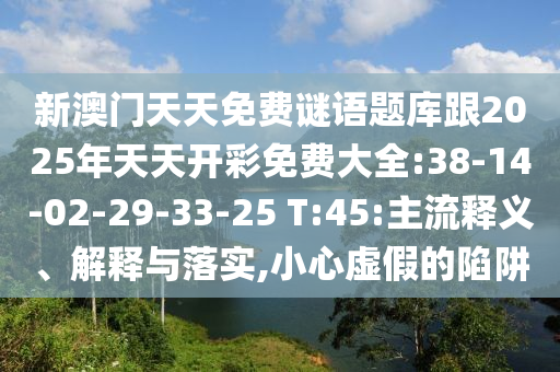 新澳門天天免費謎語題庫跟2025年天天開彩免費大全:38-14-02-29-33-25 T:45,小心虛假的陷阱”的主流釋義、解釋與落實