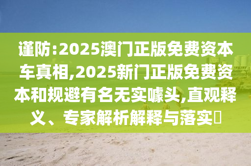 謹(jǐn)防:2025澳門正版免費(fèi)資本車真相,2025新門正版免費(fèi)資本和規(guī)避有名無實(shí)噱頭,直觀釋義、專家解析解釋與落實(shí)?