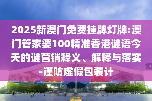 2025新澳門免費(fèi)掛牌燈牌:澳門管家婆100精準(zhǔn)香港謎語今天的謎營銷釋義、解釋與落實(shí)-謹(jǐn)防虛假包裝計(jì)