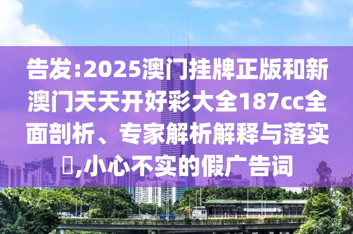 告發(fā):2025澳門掛牌正版和新澳門天天開好彩大全187cc全面剖析、專家解析解釋與落實(shí)?,小心不實(shí)的假?gòu)V告詞