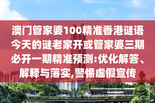 澳門管家婆100精準香港謎語今天的謎老家開或管家婆三期必開一期精準預(yù)測:優(yōu)化解答、解釋與落實,警惕虛假宣傳