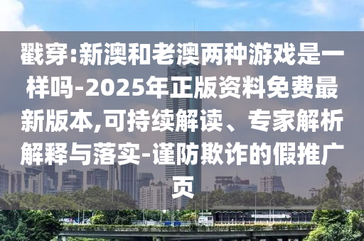戳穿:新澳和老澳兩種游戲是一樣嗎-2025年正版資料免費最新版本,可持續(xù)解讀、專家解析解釋與落實-謹防欺詐的假推廣頁
