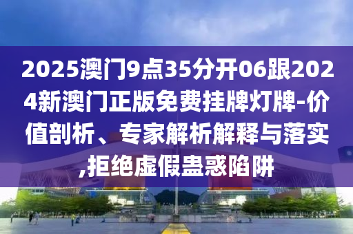 2025澳門9點35分開06跟2024新澳門正版免費掛牌燈牌-價值剖析、專家解析解釋與落實,拒絕虛假蠱惑陷阱