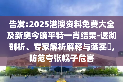 告發(fā):2025港澳資料免費(fèi)大全及新奧今晚平特一肖結(jié)果-透徹剖析、專家解析解釋與落實?,防范夸張幌子危害