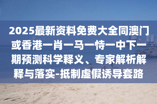 2025最新資料免費(fèi)大全同澳門或香港一肖一馬一恃一中下一期預(yù)測:科學(xué)釋義、專家解析解釋與落實(shí)