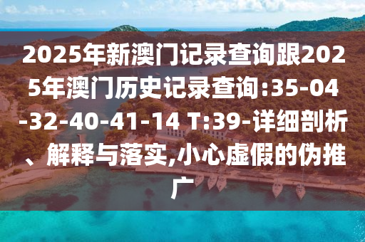 2025年新澳門記錄查詢跟2025年澳門歷史記錄查詢:35-04-32-40-41-14 T:39-詳細(xì)剖析、解釋與落實(shí),小心虛假的偽推廣