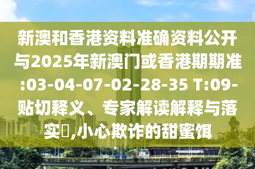 新澳和香港資料準(zhǔn)確資料公開與2025年新澳門或香港期期準(zhǔn):03-04-07-02-28-35 T:09-貼切釋義、專家解讀解釋與落實?,小心欺詐的甜蜜餌
