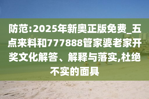 防范:2025年新奧正版免費(fèi)_五點(diǎn)來料和777888管家婆老家開獎文化解答、解釋與落實(shí),杜絕不實(shí)的面具