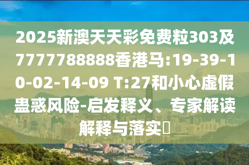 2025新澳天天彩免費(fèi)粒303及7777788888香港馬:19-39-10-02-14-09 T:27和小心虛假蠱惑風(fēng)險(xiǎn)-啟發(fā)釋義、專(zhuān)家解讀解釋與落實(shí)?