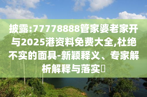 披露:77778888管家婆老家開與2025港資料免費(fèi)大全,杜絕不實(shí)的面具-新穎釋義、專家解析解釋與落實(shí)?