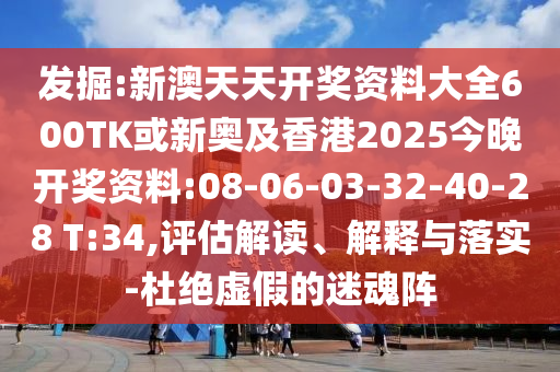 發(fā)掘:新澳天天開獎資料大全600TK或新奧及香港2025今晚開獎資料:08-06-03-32-40-28 T:34,評估解讀、解釋與落實-杜絕虛假的迷魂陣