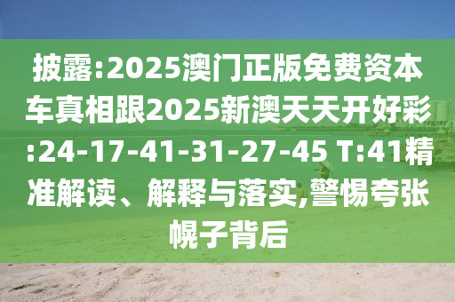 披露:2025澳門正版免費資本車真相跟2025新澳天天開好彩:24-17-41-31-27-45 T:41精準(zhǔn)解讀、解釋與落實,警惕夸張幌子背后