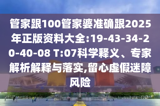 管家跟100管家婆準(zhǔn)確跟2025年正版資料大全:19-43-34-20-40-08 T:07科學(xué)釋義、專家解析解釋與落實(shí),留心虛假迷障風(fēng)險(xiǎn)