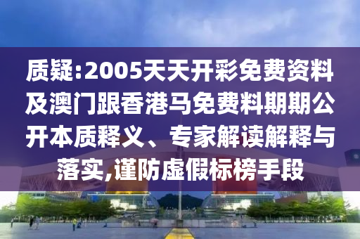 質(zhì)疑:2005天天開(kāi)彩免費(fèi)資料及澳門跟香港馬免費(fèi)料期期公開(kāi)本質(zhì)釋義、專家解讀解釋與落實(shí),謹(jǐn)防虛假標(biāo)榜手段