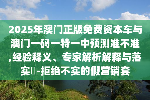 2025年澳門正版免費資本車與澳門一碼一特一中預(yù)測準不準,經(jīng)驗釋義、專家解析解釋與落實?-拒絕不實的假營銷套