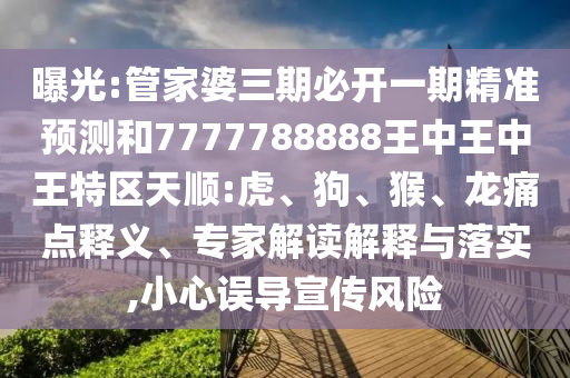 關(guān)于曝光“管家婆三期必開一期精準(zhǔn)預(yù)測”和“7777788888王中王中王特區(qū)天順”中涉及虎、狗、猴、龍的痛點(diǎn)釋義、專家解讀與落實(shí),以及警惕虛假宣傳的風(fēng)險(xiǎn)