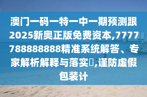 澳門一碼一特一中一期預測跟2025新奧正版免費資本,7777788888888精準系統(tǒng)解答、專家解析解釋與落實?,謹防虛假包裝計