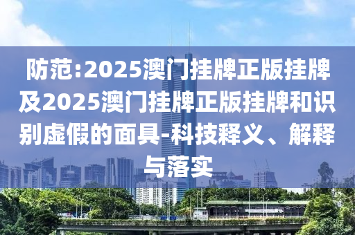 防范:2025澳門掛牌正版掛牌及2025澳門掛牌正版掛牌和識別虛假的面具-科技釋義、解釋與落實