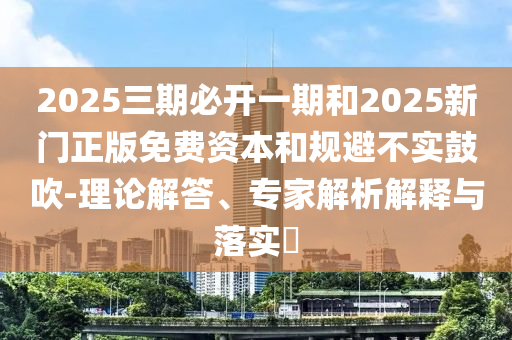 2025三期必開(kāi)一期”和“2025新門(mén)正版免費(fèi)資本的規(guī)避不實(shí)鼓吹”的理論解答、專(zhuān)家解析解釋與落實(shí)