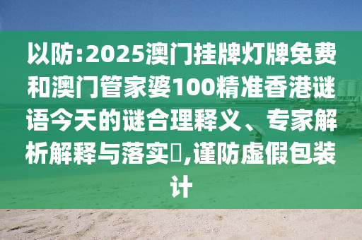 以防:2025澳門掛牌燈牌免費(fèi)和澳門管家婆100精準(zhǔn)香港謎語今天的謎合理釋義、專家解析解釋與落實(shí)?,謹(jǐn)防虛假包裝計(jì)