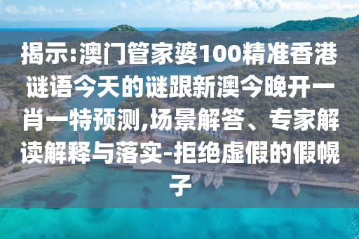 澳門管家婆100精準(zhǔn)香港謎語今天的謎跟新澳今晚開一肖一特預(yù)測:場景解答、專家解讀解釋與落實(shí)