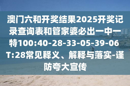 澳門六和開獎結(jié)果2025開獎記錄查詢表和管家婆必出一中一特100:40-28-33-05-39-06 T:28的常見釋義、解釋與落實