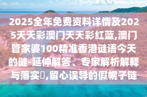 2025全年免費資料詳情及2025天天彩澳門天天彩紅藍,澳門管家婆100精準(zhǔn)香港謎語今天的謎-延伸解答、專家解析解釋與落實?,留心誤導(dǎo)的假幌子鏈