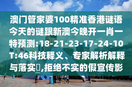 澳門(mén)管家婆100精準(zhǔn)香港謎語(yǔ)今天的謎跟新澳今晚開(kāi)一肖一特預(yù)測(cè):18-21-23-17-24-10 T:46科技釋義、專(zhuān)家解析解釋與落實(shí)?,拒絕不實(shí)的假宣傳影